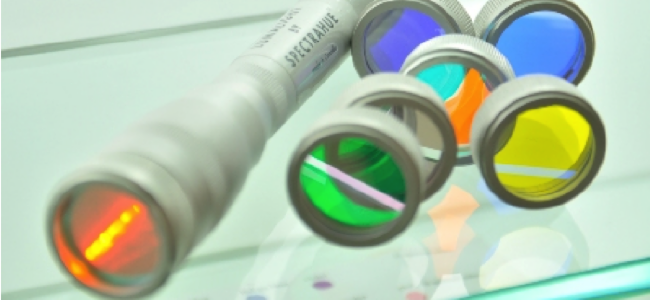 - 太陽光の7色の光(赤、橙、黄、緑、青、青紫、紫)を特殊なカラーフィルターを用いた