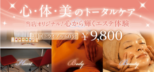 - 「ヒーリングオアシスがどんなサロン?」なのかがわかる内容となっております。また、どのコースを受けたらわからない方のためのコースでもあります。3つのケアを行うことによって今、あなたに必要なケアに出会えることでしょう。本格的な心のケアが融合されているサロンは他にはありません。心も体も肌のキレイになれる初体験を是非お楽しみくださいませ。