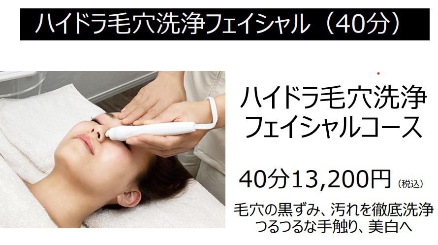 - 最新美顔器ハイドラを使用して毛穴を洗浄&引き締めていきます