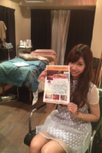 フェイシャル&ダイエットコースでご来店中!当サロン開発のお茶がお気に入りで美容雑誌「bea’z UP」に愛用中と掲載もしてくれました。