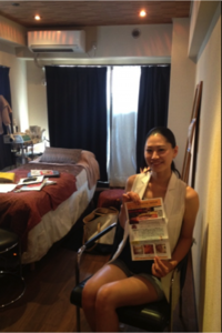 フェイシャル&ダイエットコースでご来店中!当サロン開発のお茶がお気に入りで美容雑誌「bea’z UP」に愛用中と掲載もしてくれました。